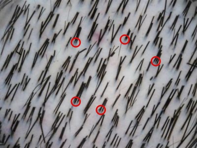 這些毛囊靠近仔細看,一點其實是一束,每一束就是一株毛囊(hair graft)有一根,兩根,三根或是四根。