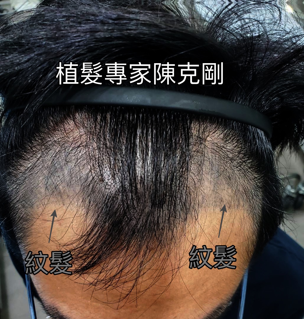 但是要在沒有頭髮的地方,單獨使用紋髮,看起來還是很不自然。接下來就用下圖這個案例來說明紋髮和植髮的不同。